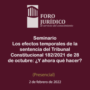 A partir del contenido de la Sentencia del Tribunal Constitucional , 182/2021 de 28 de octubre, en este seminario analizaremos la limitación de efectos temporales de la declaración de nulidad establecida en la misma, buscando posibles cauces de revisión de todas aquellas situaciones englobadas dentro del amplio concepto de situación consolidada que contiene el Fundamento de Derecho Sexto de esta Resolución.